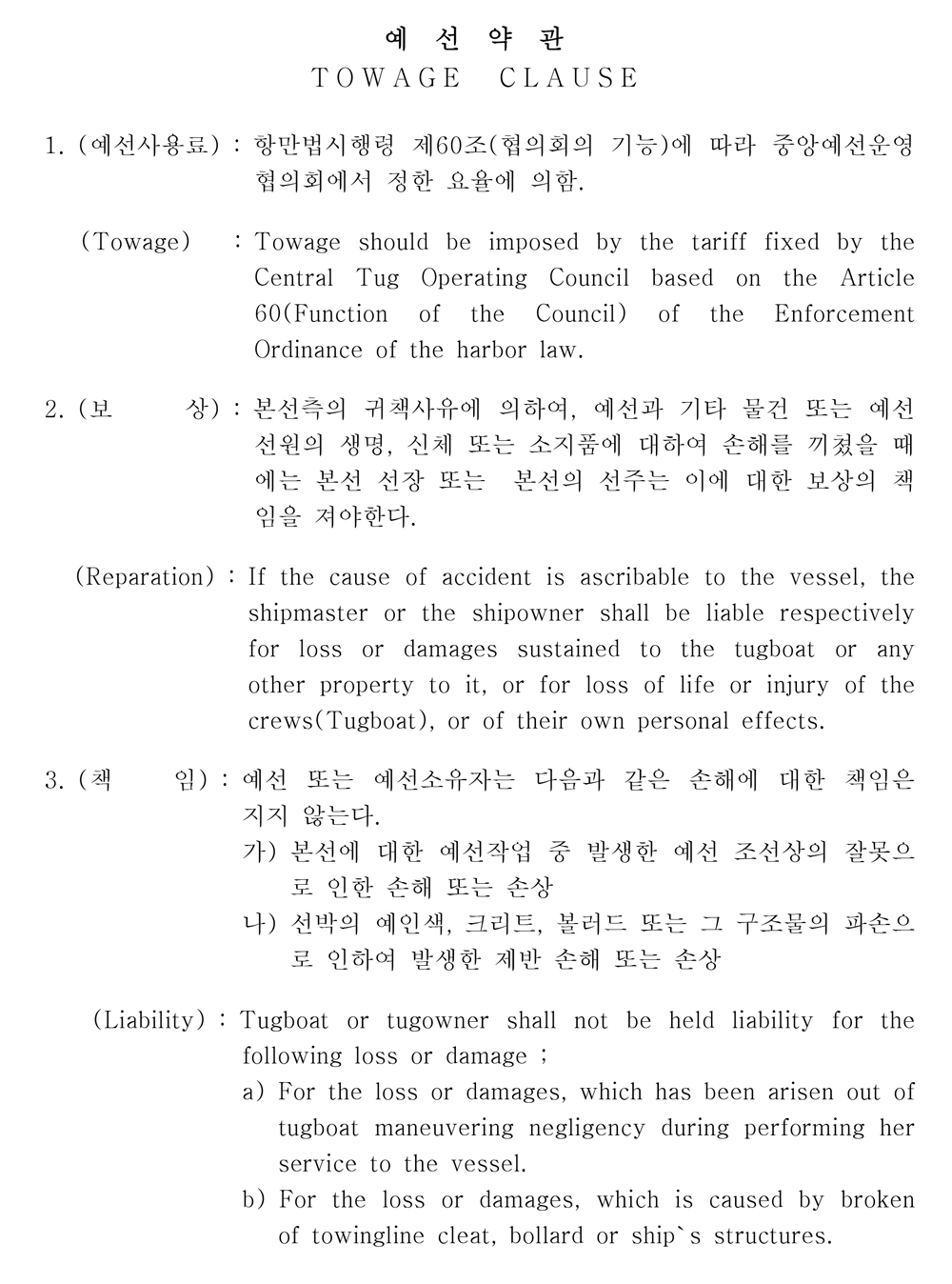 ①이 약관은 한국예선업협동조합에 가입한 조합원이 운영 하는 예선을 사용할 시에 적용한다.