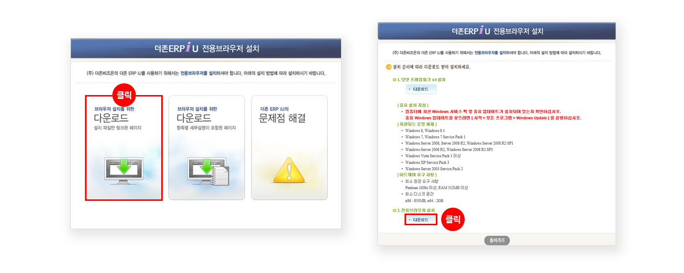 전용브라우저를 다운로드 및 설치하세요.