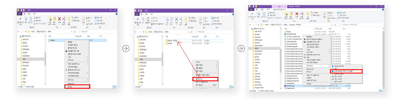 복사된 폴더 안에서 Neoweb.exe 파일 찾앗 마우스 우클릭 후 보내기 클릭 후 바탕 화면에 바로 가기를 만듭니다.